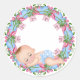 It's a Boy Baby Shower Sticker with baby sleeping om wreath with bows and diaper