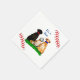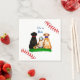 Baby shower paper napkins with a baseball theme. A baby sitting next to two dogs, a black lab and a yellow lab.