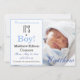 Celebrate the birth of your new baby boy with this fun and fabulous "It's a Boy!" Baby Boy Birth Announcement. Replace the photo with your own. Customise the blue and black font and colour of the text with your own choice or keep this popular style of typography simply by using the edit menu. A blue and white ribbon pattern is featured on the back of the invitation. Other colours and patterns are available. Matching stickers, envelopes, and return address labels are available.