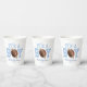 These are football themed paper cups with a blue polka dot design. It's a boy! The design is simple and minimal.