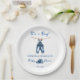 It's a boy blue jeans baby shower template paper plates personalised baby shower tableware, cute baby denim jeans hanging pegged on a line blue jeans cap simple minimalist modern baby shower personalised plates