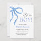 Elegant and Modern Baby Boy Shower Invitation in Blue and Gray, adorned with a Stylish Blue Ribbon and personalized Typography. Perfect for a Trendy and Memorable Celebration!