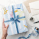 Colourful and cute this "It's a boy" colourful blue stork theme wrapping paper is available in 5 different sizes. Featuring beautiful white storks carrying a bundle of joy wrapped in a blue blanket they are flying with a blue and white vertical striped background. Perfect for bridal showers or for a present for new mum and dad, place your order today!