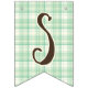 Green and brown "It's a Boy!" baby shower bunting flags with polka dots and plaid patterns.