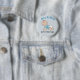 Customise this blue button with baby's name. Button has a crawling baby in a diaper and t shirt. It's a boy is written at the top. Great for baby shower party favours