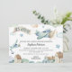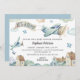 Celebrate the upcoming arrival of a baby boy with this cute baby shower invitation featuring a blue airplane flying over the town with a banner announcing "It's a Boy!". Puffy clouds, birds and stars fill the sky in this watercolor storybook scene to celebrate the happy occasion. Personalize the sample text with your baby shower details.