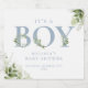It's a boy baby shower design featuring elegant dusty blue greenery typography. Designed by Thisisnotme©