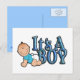 It's a Boy gender reveal baby birth announcment would make a great baby shower invitation. This adorable postcard is perfect to announce the arrival of your little one. It features 3D shiny bubble script with a baby boy crawling. On the back is a light blue background with plenty of room to add your own wording. A simple and affordable way to announce the birth of your new baby…or use them as baby shower invitations!