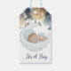 Dreamy Baby Boy Moon And flowers Hershey®'s Kisses® peaceful sleeping baby in this charming invitation, perfect for welcoming your little prince. This design features a delicate watercolor illustration of a baby boy resting on a soft, fluffy cloud, framed by a lush arrangement of midnight blue and champagne gold roses.