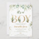 Welcome your little bundle of joy with a touch of natural elegance with this It's a Boy Greenery Baby Shower Invitation. Featuring soft watercolor botanical elements in shades of green, perfect for a timeless nature-inspired celebration. Clean, minimalist, and gender-specific, this design is ideal for modern moms who love simplicity and style. Whether you're hosting an outdoor gathering or an intimate indoor event, this botanical baby shower invite sets the tone for a fresh and elegant celebration. BBS635