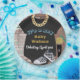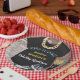 It was all a Dream... Kick it Ole School with1990's Hip Hop Throwback Baby Shower! It's a Lil Hip Hop Prince! Cute black bodysuit with fly gold chain, chequered sneakers with a blue and gold microphone on a graffiti brick background and blue wording.