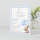 This charming baby shower invitation features a cute little bunny holding balloons and a blue gingham background. With your registry QR code and event details on the reverse. Designed by Thisisnotme©