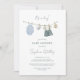 Our invitation features a delightful watercolor illustration of tiny baby boy clothes hanging on a clothesline. Each piece is lovingly painted with soft pastel colours, creating a heartwarming and elegant design that perfectly sets the tone for celebrating the arrival of a precious little boy.