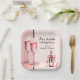 Make your joint birthday party unforgettable with this stylish and festive paper plate! With a sophisticated two-tone pink layout, the left side features a rich pink shade adorned with golden glitters, watercolor champagne glasses, and a bottle that sets the scene for a bubbly celebration. The scripted “It’s a double celebration” adds a touch of glamour and excitement across the plate. On the right, the soft pink background offers room for all your personalised party details in a classy script and serif font pairing.