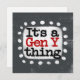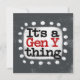 "It's A Gen Y Thing" is a cute text design in grey with black and red text, along with a white accent shape and white textured whimsical dots surrounding it.