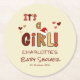 It's a Girl! Christmas Santa Hat Baby Shower Round Paper Coaster