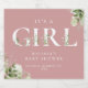 It's a girl baby shower design featuring elegant greenery typography on a dusty rose pink background. Designed by Thisisnotme©