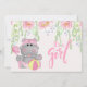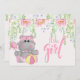 It's a Girl Hippo pink floral invitation. Cute hippo has a pink bow, a pink rattle, a pink diaper, and a beach ball. Customise with your baby shower details. ( hippo/wkristidesigns)