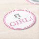 It's a Girl! Modern Pink Baby Announcement Round Paper Coaster