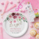 Its a girl Modern Pink Burgundy Floral Baby Shower Paper Plate