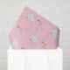 Flying stork delivering a baby girl in a ribbon tied sack
