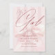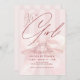 Trendy coquette pink bow it's a girl baby shower invitation with a handwritten style calligraphy script and stylish vintage French stripes. +++++++++++ Easy to personalize with your text and details.
