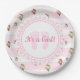 It's a Girl Pink & White Lacey Floral chic pink roses Baby Shower Plates