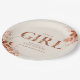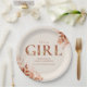 It's a girl baby shower paper plate featuring elegant typography and rustic floral foliage. Designed by Thisisnotme©