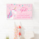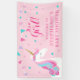 This unicorn baby shower banner features a cute whimsical unicorn design with flowers, stars, confetti, bunting and faux gold glitter. Personalise it with your own text. Matching baby shower products available.