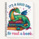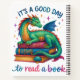 Vibrant, colourful design featuring a stack of books, colourful dragon on top, and a mushroom. The colourful text reads: "It's a good day to read a book". This design is available on a wide variety of products.