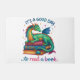 Vibrant, colourful design featuring a stack of books, colourful dragon on top, and a mushroom. The colourful text reads: "It's a good day to read a book". This design is available on a wide variety of products.