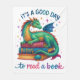 Vibrant, colourful design featuring a stack of books, colourful dragon on top, and a mushroom. The colourful text reads: "It's a good day to read a book". This design is available on a wide variety of products.