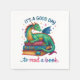 Vibrant, colourful design featuring a stack of books, colourful dragon on top, and a mushroom. The colourful text reads: "It's a good day to read a book". This design is available on a wide variety of products.