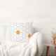 Inspired by a beehive, this modern design is the perfect accent to your couch. It features a grey and white pattern with orange accents.