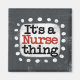 "It's A Nurse Thing" is a cute text design in grey with black and red text, along with a white accent shape and white textured whimsical dots surrounding it.