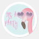 Cute flamingo illustration, wearing heart shaped glitter sunglasses. Perfect envelope seal for party's or any summer occasion.