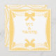 This customisable invitation card can be used to announce any type of party including baby showers, bridal showers, birthday parties, gender reveal parties and any other type of group gathering. With a general theme of bows and lace edges in an elegant yellow and white colour combo, this frilly design is highly decorative and will impress all of your party invitees. Fill out your party details on the back using the blank lines. Other similar designs and colour combos are available in my shop.