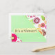 Solid green background accented with bold floral corners & hand-stamped greeting