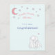NewParkLane - Postcard for twin babies, featuring two cute rabbits, sitting and staring at the pink stars and the moon, and a sweet nursery rhyme quote: 'Twinkle, twinkle little star’, against a baby blue background.