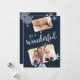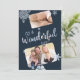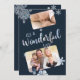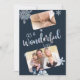 This beautiful flat Holiday card design, called It's a Wonderful Life Christmas Photo Card, has a navy blue background with silver and white hologram style snowflakes scattered on the front.In the centre it says It's a Wonderful Life in a fun script in holographic style colours. Above and below that is a place for two (2) family pictures. The back is printed with a burlap pattern. On the back in the middle there is a place for your last name and a short message just below in white. All elements are printed on our high quality products, they do not include any real gold, jewels, embossing, or other textile elements. All designs are copyright Noteable Expressions, Inc. All rights reserved.