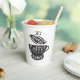 This hot beverage cup features whimsical hand lettering that says "It's always coffee time" on a white background. The lettering features decorative swashes and ornamental swirls.