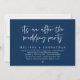 Mark the beginning of your forever with elegance using our contemporary navy blue themed wedding elopement celebration invitation card, "It's an after the wedding party". Perfect for couples extending their joyous occasion, this invitation exudes sophistication with a hint of playfulness, setting the stage for a memorable event. Adorned with a timeless modern script design theme, it adds a touch of refined charm to your festivities. Crafted by TeeshaDerrick, this invitation promises to beautifully capture your love story.