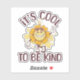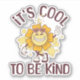 Retro style illustration with "It's cool to be kind" text design and cute smiling mascot flower decoration