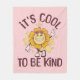 Retro style illustration with "It's cool to be kind" text design and cute smiling mascot flower decoration