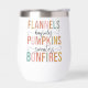 This colourful and fun fall design features a list of autumn favourites, including "Flannels," "Hayrides," "Pumpkins," "Sweaters," and "Bonfires." The text is presented in a bold, uppercase font with each word filled in with a different warm, earthy hue—ranging from soft pinks and oranges to muted greens and blues—perfectly capturing the cosy and vibrant spirit of the season. The words "hayrides" and "sweaters" are written in a flowing script, adding a touch of elegance and creating a nice contrast with the bold block letters. Decorative flourishes frame the script text, adding to the overall charm and appeal. This design is perfect for fall.