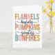 This colourful and fun fall design features a list of autumn favourites, including "Flannels," "Hayrides," "Pumpkins," "Sweaters," and "Bonfires." The text is presented in a bold, uppercase font with each word filled in with a different warm, earthy hue—ranging from soft pinks and oranges to muted greens and blues—perfectly capturing the cosy and vibrant spirit of the season. The words "hayrides" and "sweaters" are written in a flowing script, adding a touch of elegance and creating a nice contrast with the bold block letters. Decorative flourishes frame the script text, adding to the overall charm and appeal. This design is perfect for fall.
