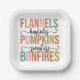This colourful and fun fall design features a list of autumn favourites, including "Flannels," "Hayrides," "Pumpkins," "Sweaters," and "Bonfires." The text is presented in a bold, uppercase font with each word filled in with a different warm, earthy hue—ranging from soft pinks and oranges to muted greens and blues—perfectly capturing the cosy and vibrant spirit of the season. The words "hayrides" and "sweaters" are written in a flowing script, adding a touch of elegance and creating a nice contrast with the bold block letters. Decorative flourishes frame the script text, adding to the overall charm and appeal. This design is perfect for fall.