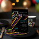 Challenge and invite your party guests to a game of laser tag with our fun, bright and cool laser tag themed birthday party invitation. The design features a colour typographic design "It's Game On" with beams of bright multiple coloured lights shooting off from the text. The black background sets the mood with the bight laser beams creating a bold look.