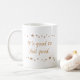 A border of lively gold stars surrounds the phrase, "It's good to feel good," on both sides of mugs. Can customise with your own feel good text. Matching products are in this store.