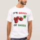 This t-shirt features a funny "It's Gravy Not Sauce" slogan, along with artwork of tomatoes and basil. Message MineByDesign for help with custom designs.